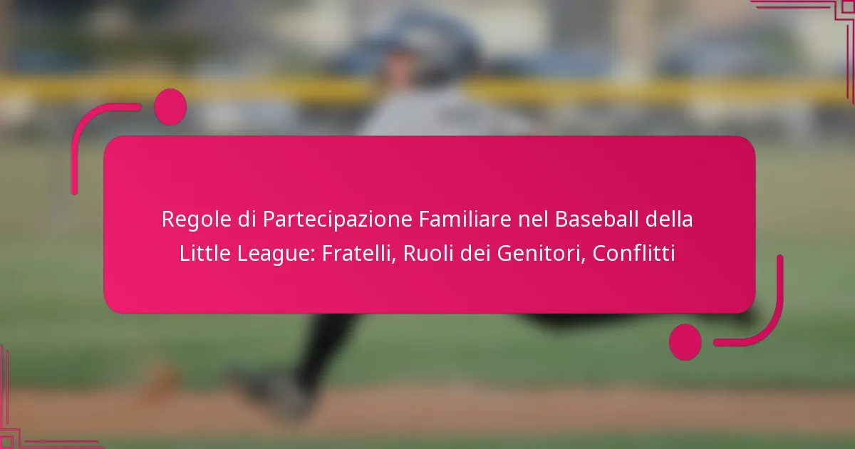 Le regole di partecipazione familiare nel Little League Baseball sono essenziali per creare un’atmosfera di supporto per i giovani atleti e promuovere il coinvolgimento della comunità. Queste linee guida chiariscono i ruoli dei fratelli e dei genitori, assicurando che tutti comprendano le proprie responsabilità e l’importanza di rispettare le regole stabilite per un’esperienza positiva.