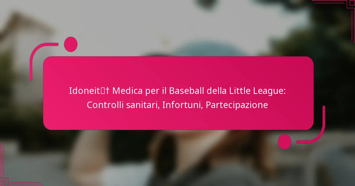 La partecipazione al baseball della Little League richiede ai giocatori di completare specifici controlli sanitari, comprese le visite mediche e le vaccinazioni, per garantire la loro idoneità al gioco. La consapevolezza delle lesioni comuni e delle misure preventive è essenziale per mantenere la sicurezza e il divertimento dei giocatori. Inoltre, i criteri di idoneità, come i limiti di età e le regole di residenza, devono essere compresi dai giocatori e dalle loro famiglie per facilitare una partecipazione adeguata.