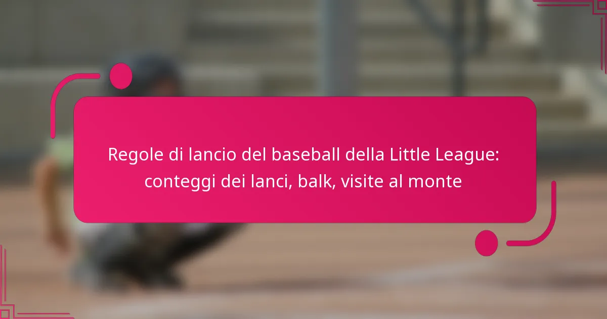 La Little League Baseball implementa regole specifiche per il lancio per garantire la sicurezza e il fair play dei giovani atleti. Queste includono limiti al numero di lanci adattati ai gruppi di età, regolamenti sui balk per prevenire pratiche ingannevoli e restrizioni sulle visite al monte per mantenere il flusso e la strategia del gioco. Comprendere queste regole è essenziale per allenatori, giocatori e genitori per promuovere un ambiente positivo e competitivo.